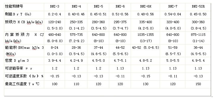 粘结钕铁硼性能表